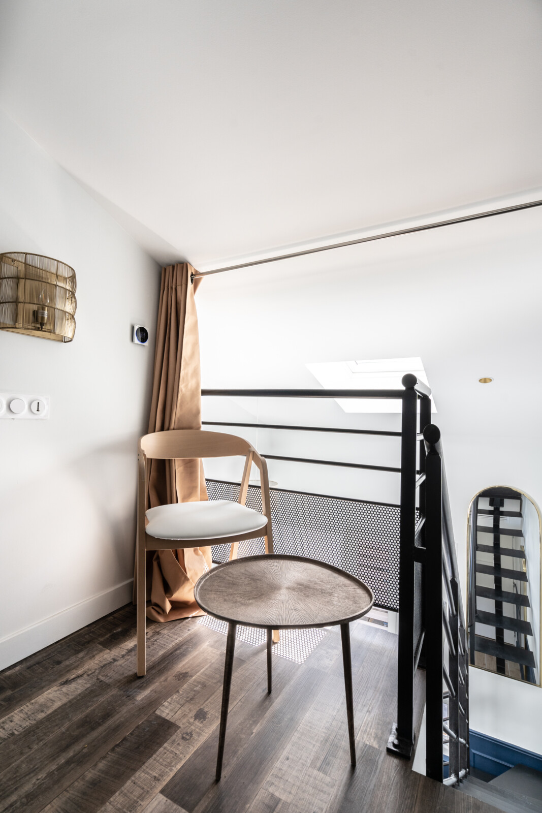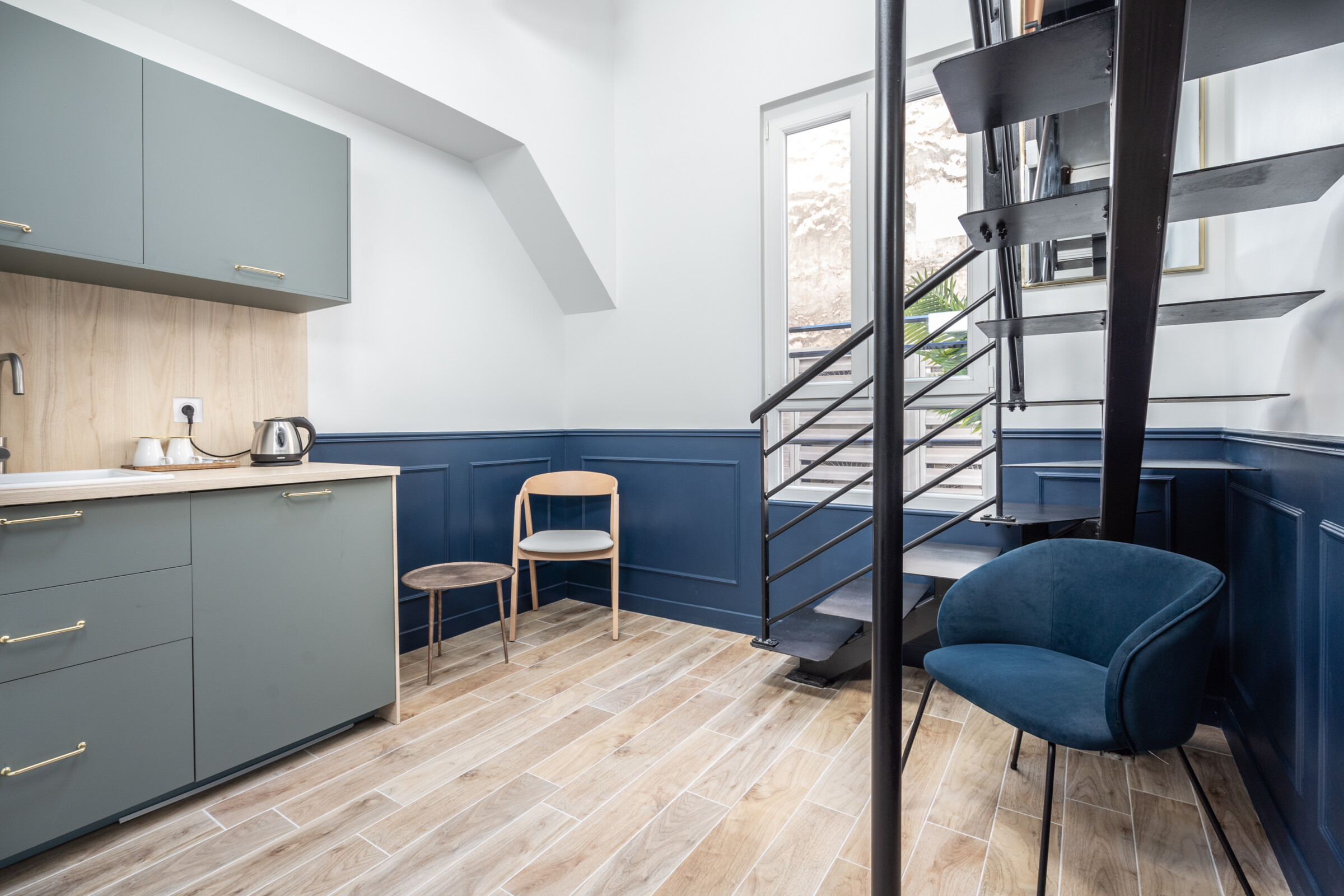 Dispuesto en dos niveles, el dormitorio del entrepiso le ofrece un espacio que incluye un área de cocina para tener más posibilidades.
