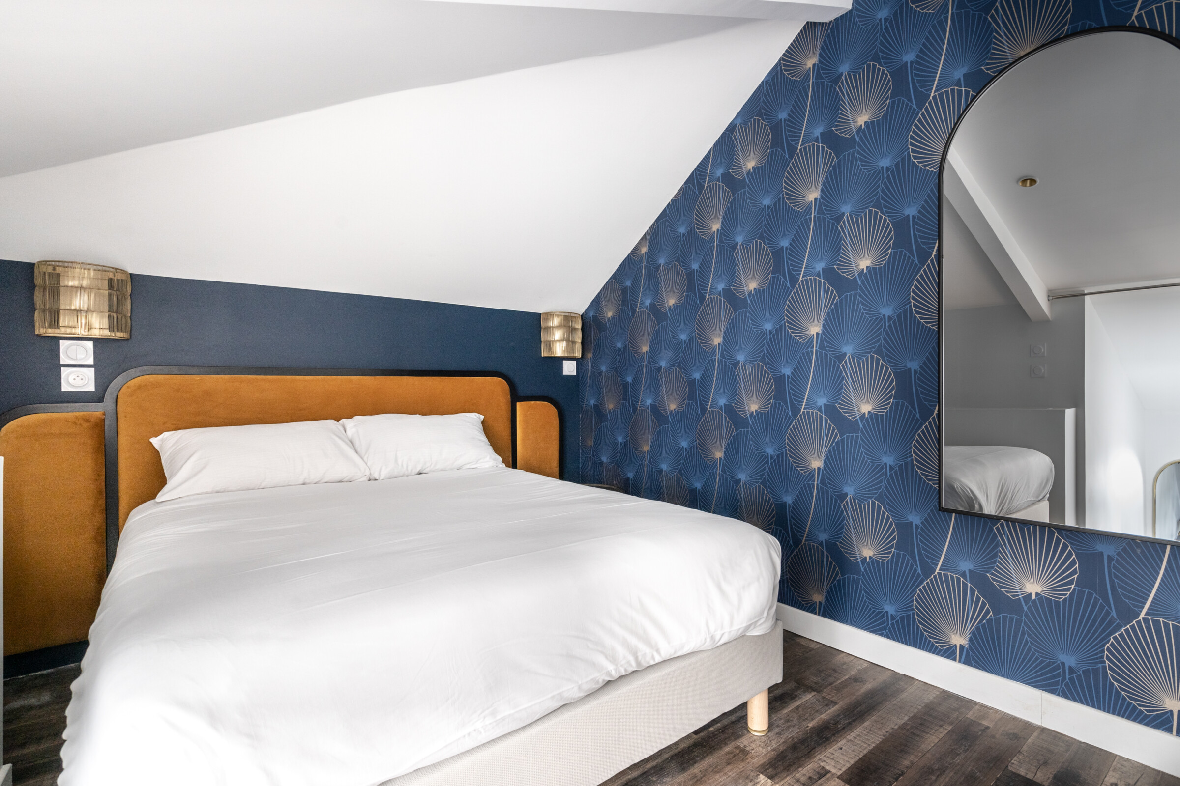 Ropa de cama nueva Escritorio, armario y espejo: decoración realizada en colaboración con Maison du Monde.